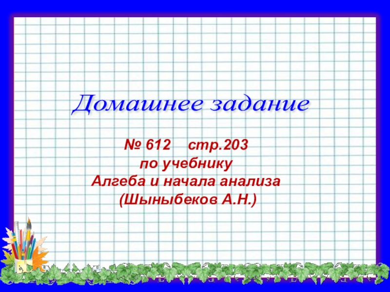 Домашнее задание № 612  стр.203  по учебнику Алгеба и начала анализа (Шыныбеков А.Н.)