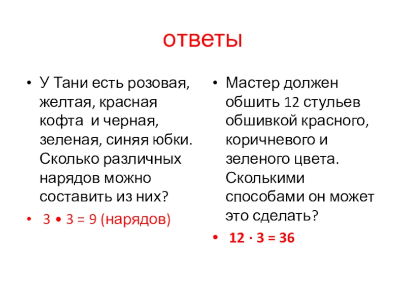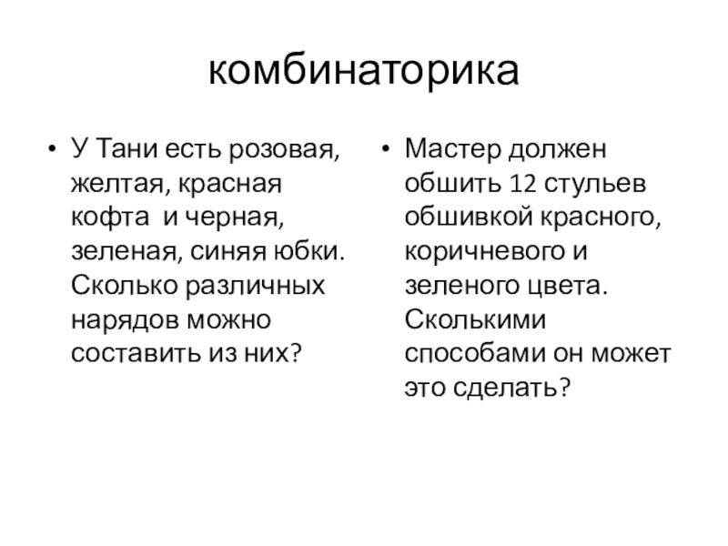 Мастер должен обшить 12 стульев обшивкой красного, коричневого и зеленого цвета. Сколькими способами он может это сделать?