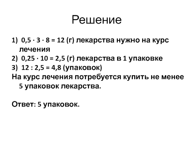 2) 0,25 · 10 = 2,5 (г) лекарства в 1 упаковке