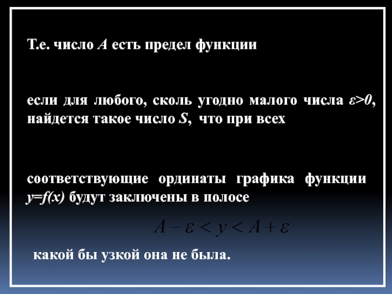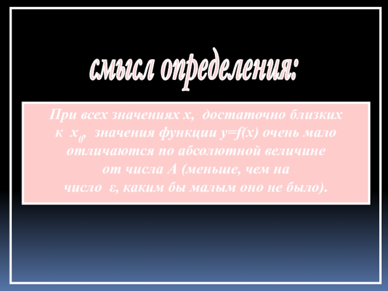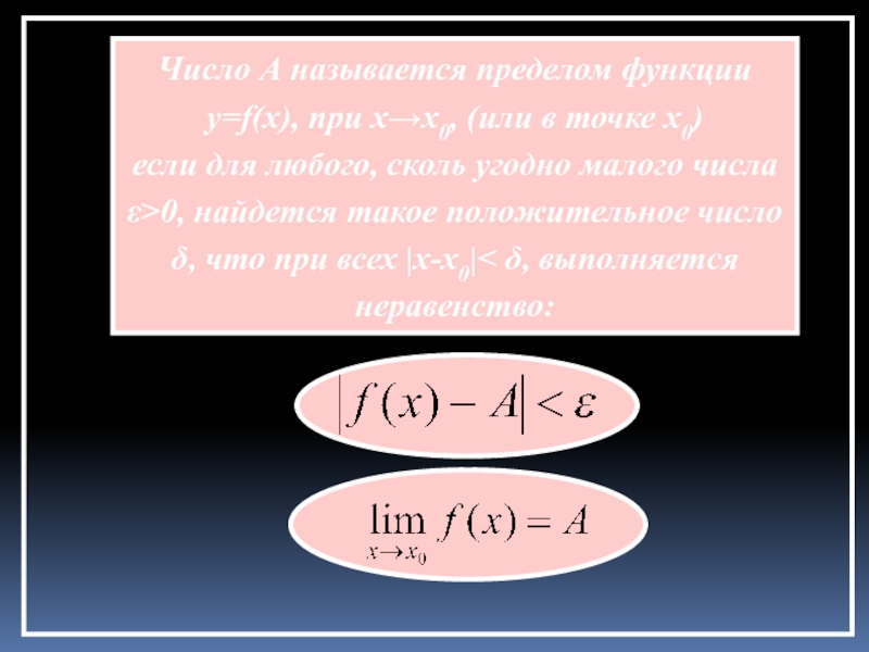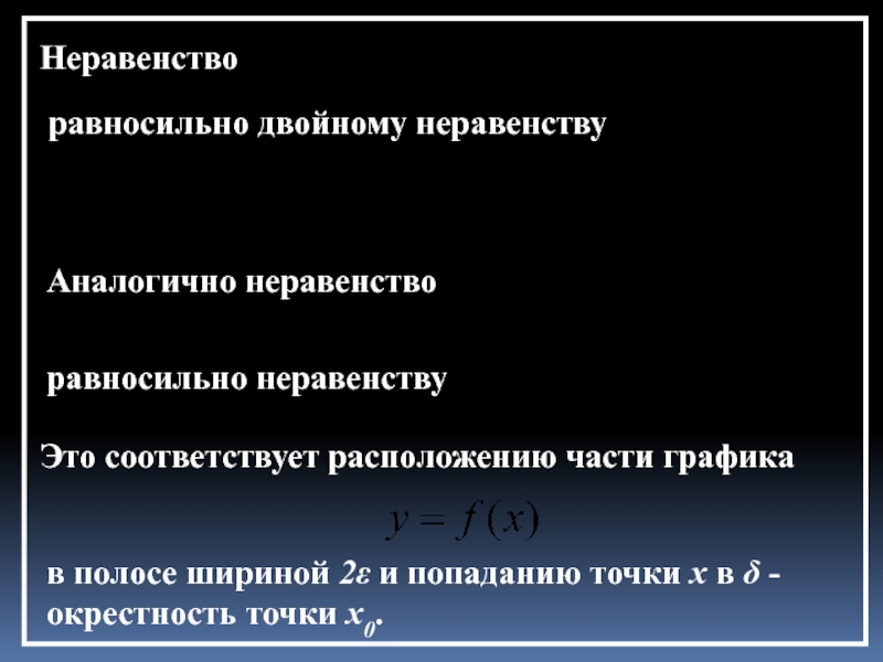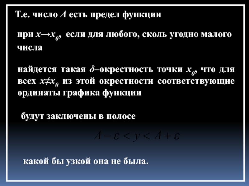 найдется такая δ–окрестность точки x0, что для всех х≠x0 из этой окрестности соответствующие ординаты графика функции