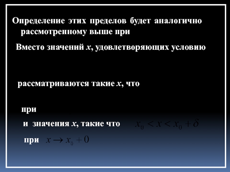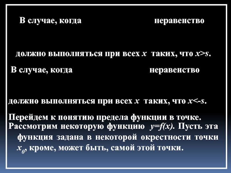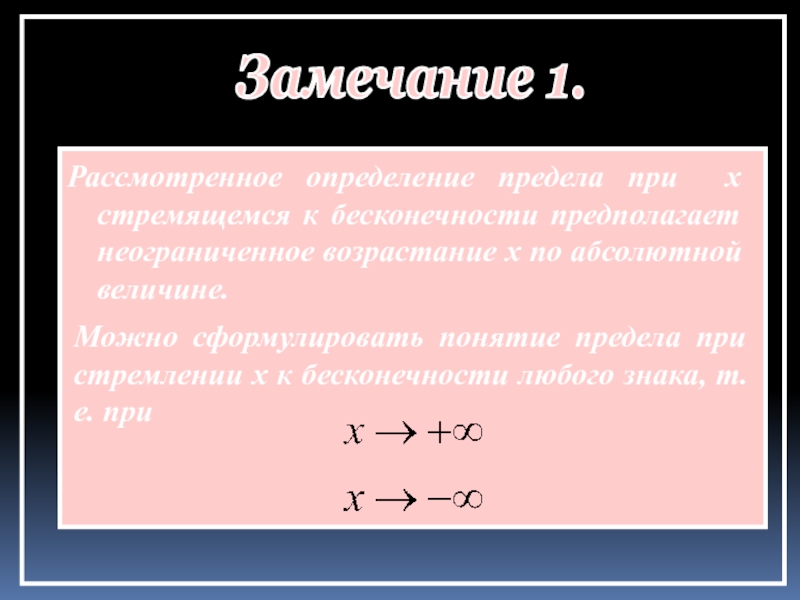 Можно сформулировать понятие предела при стремлении x к бесконечности любого знака, т.е. при