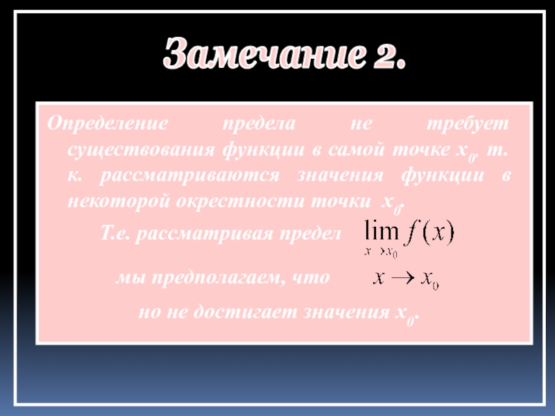 Рассмотрим некоторую функцию у=f(x). Пусть эта функция задана в некоторой окрестности точки x0, кроме, может быть, самой этой точки.
