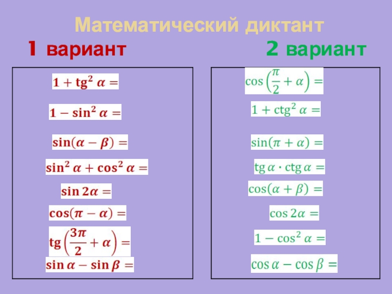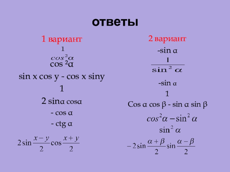 Cos α cos - sin α sin