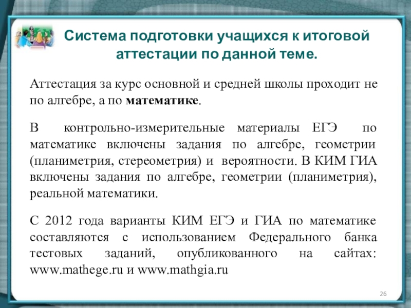 Система подготовки учащихся к итоговой аттестации по данной теме.