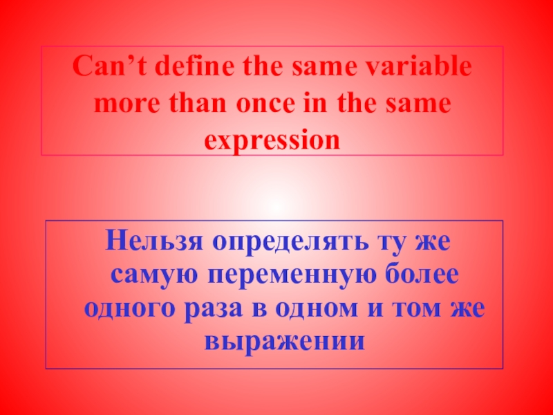 Нельзя определять ту же самую переменную более одного раза в одном и том же выражении