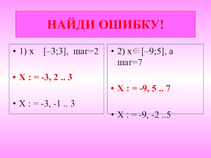 2) x∈[–9;5], а шаг=7