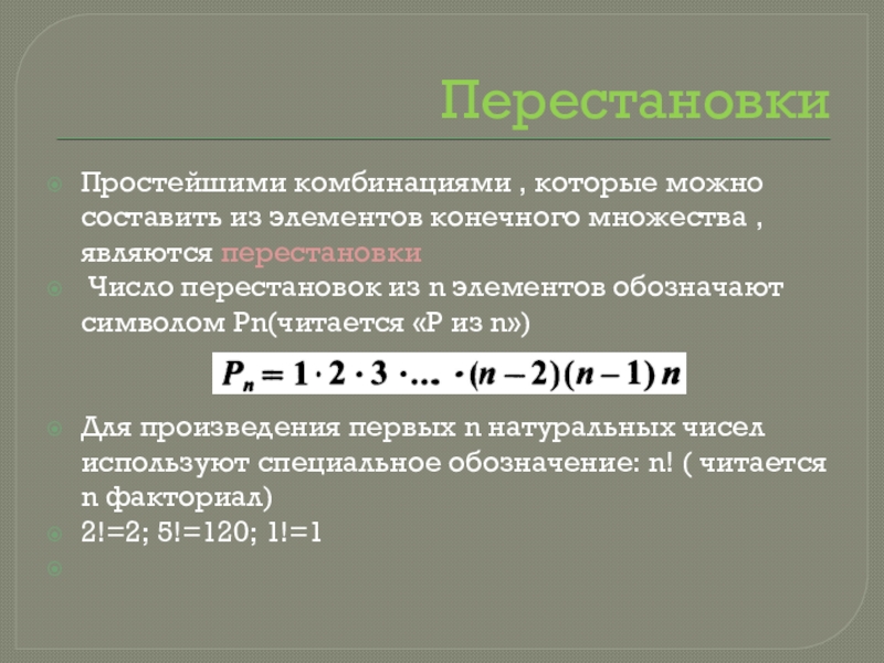Таким образом , число всевозможных перестановок из n элементов вычисляется