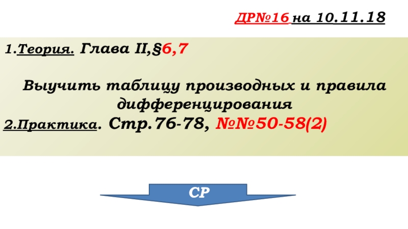 ДР№16 на 10.11.18