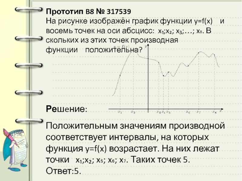 Отрицательным значениям производной соответствуют интервалы, на которых функция f(x) убывает. В этих интервалах лежат точки x₄; x₅; x₆; x₇; x₈; x₁₁; x₁₂. Таких точек 7.