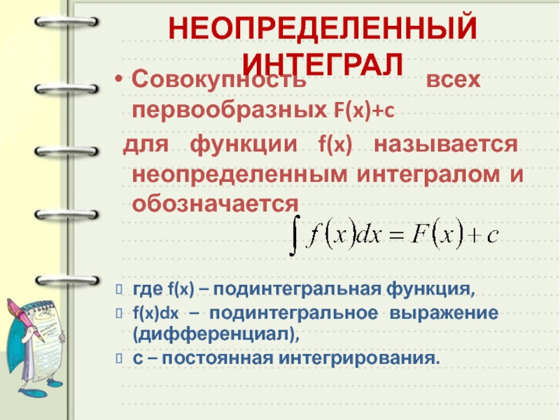 НЕОПРЕДЕЛЕННЫЙ ИНТЕГРАЛ