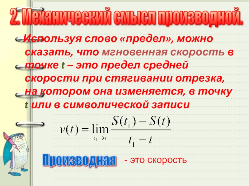 Производная от функции в данной точке равна угловому коэффициенту касательной, проведенной к графику функции в этой точке.