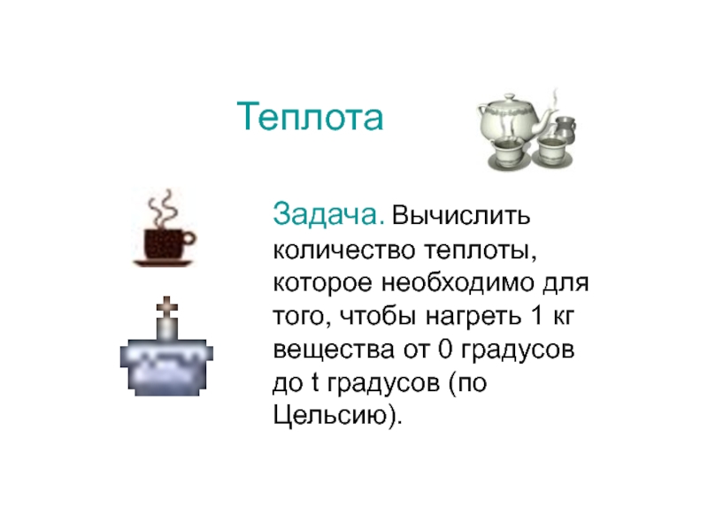 Слайд 28Задача. Вычислить количество теплоты, которое необходимо для того, чтобы нагреть 1