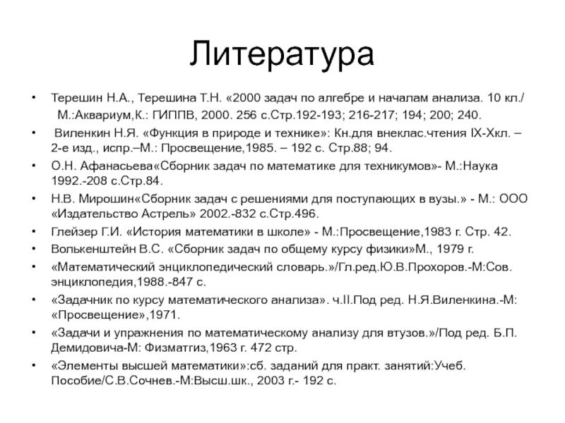 Виленкин Н.Я. «Функция в природе и технике»: Кн.для внеклас.чтения IX-Xкл. – 2-е изд., испр.–М.: Просвещение,1985. – 192 с. Стр.88; 94.
