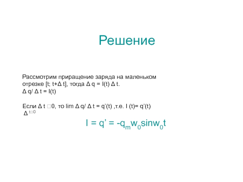 Если Δ t ?0, то lim Δ q/ Δ t = q’(t) ,т.е. I (t)= q’(t)