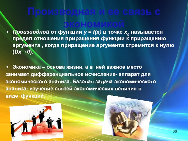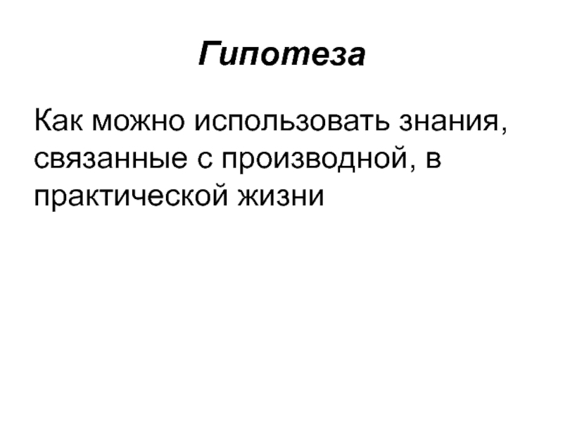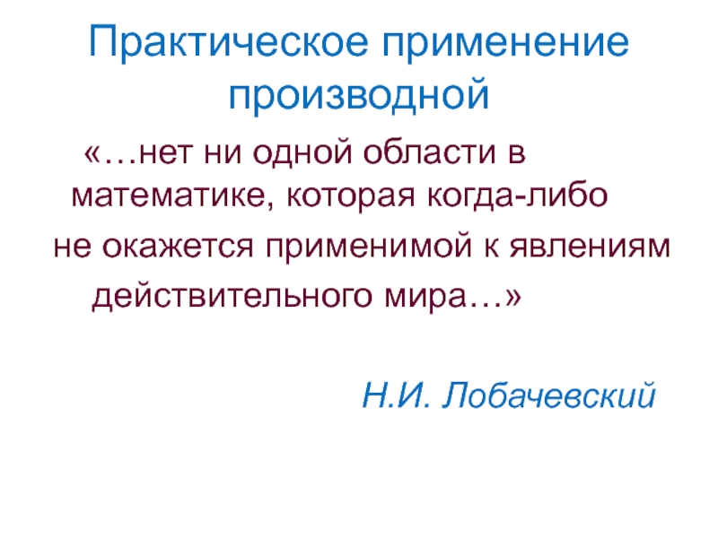 Производная помогает нам успешно решать не только математические задачи, но и задачи практического характера в разных областях науки и техники.»