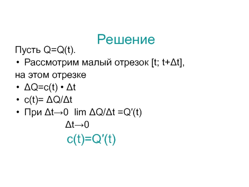 При Δt→0 lim ΔQ/Δt =Q′(t)