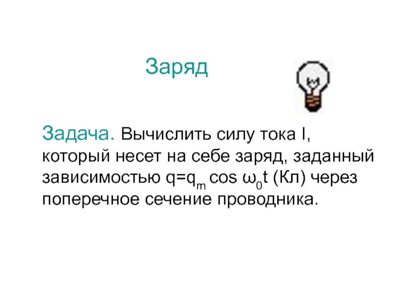 Задача. Вычислить силу тока I, который несет на себе заряд, заданный