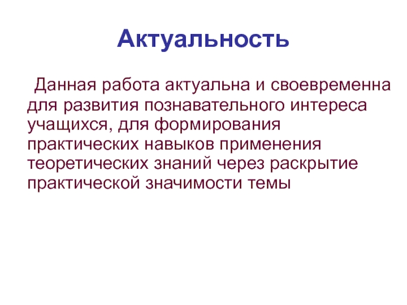 Данная работа актуальна и своевременна для развития познавательного интереса
