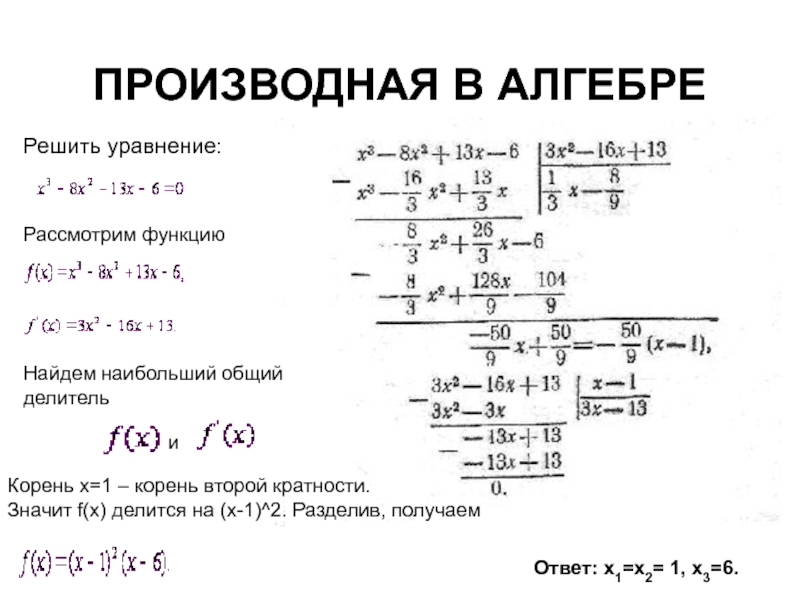 Слайд 19ПРОИЗВОДНАЯ В АЛГЕБРЕ