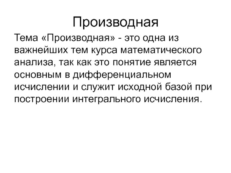 Тема «Производная» - это одна из важнейших тем курса математического анализа,