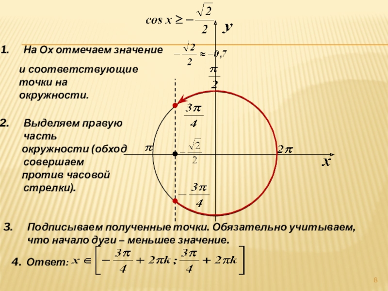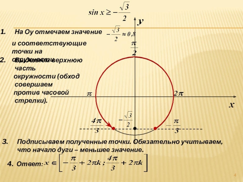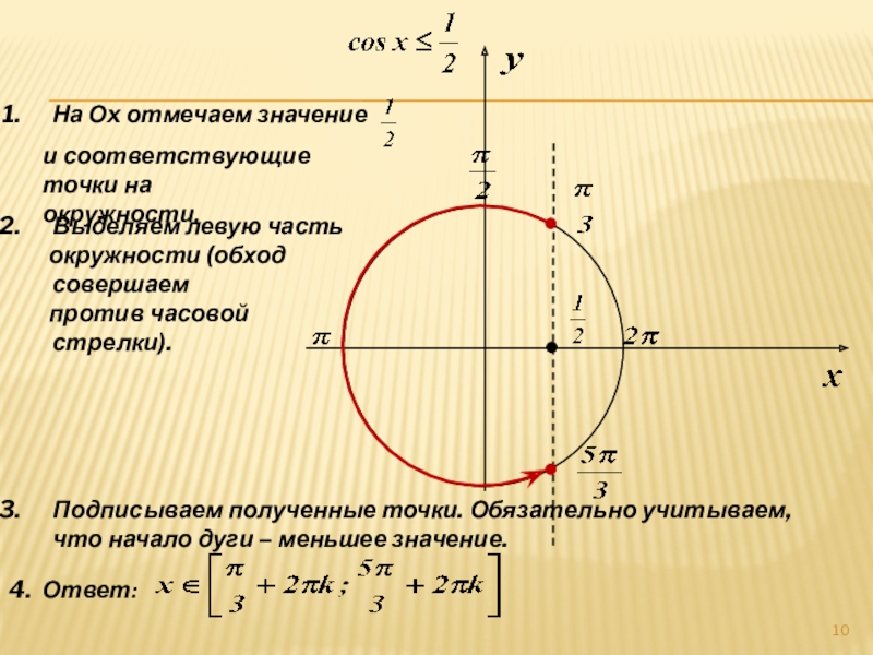 4.Записать числовые значения граничных точек, при этом начало дуги- меньшее значение