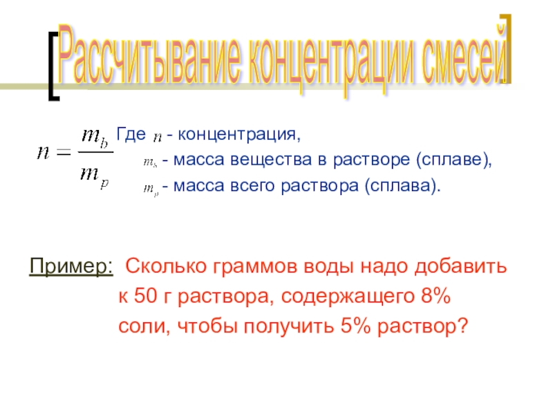 Рассчитывание концентрации смесей