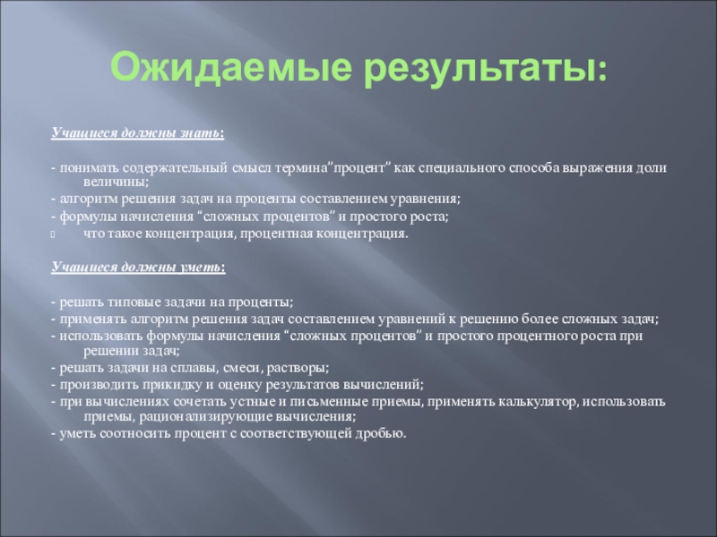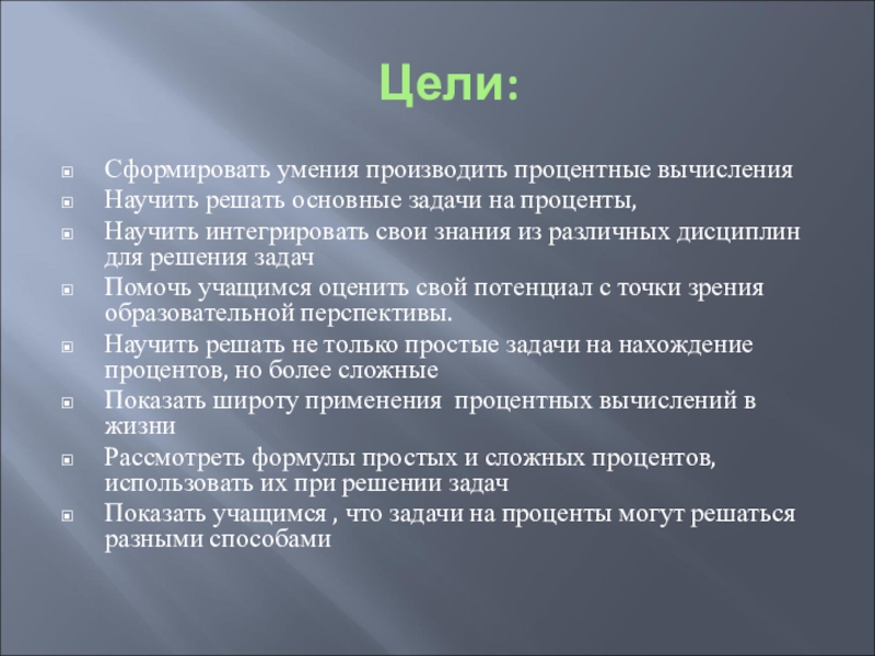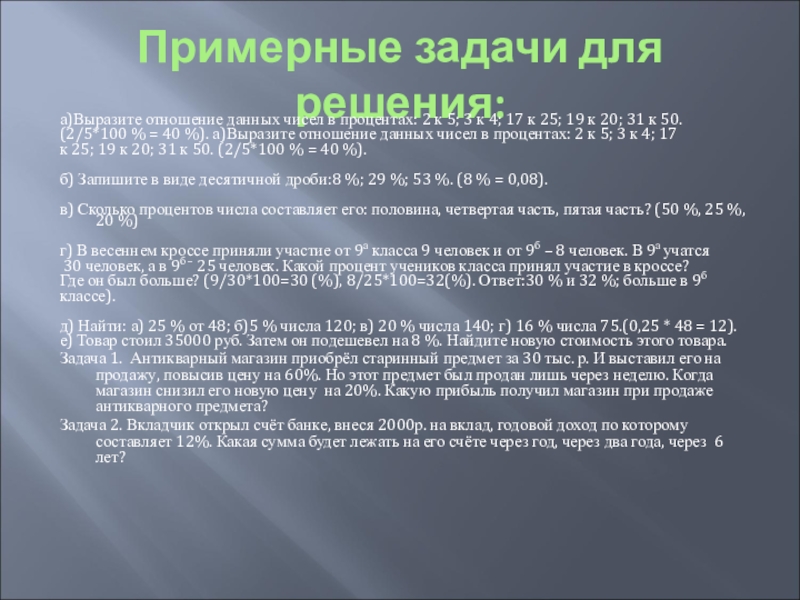 Научить решать не только простые задачи на нахождение процентов, но более сложные