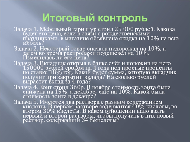 Задача 1. Мебельный гарнитур стоил 25 000 рублей. Какова будет его