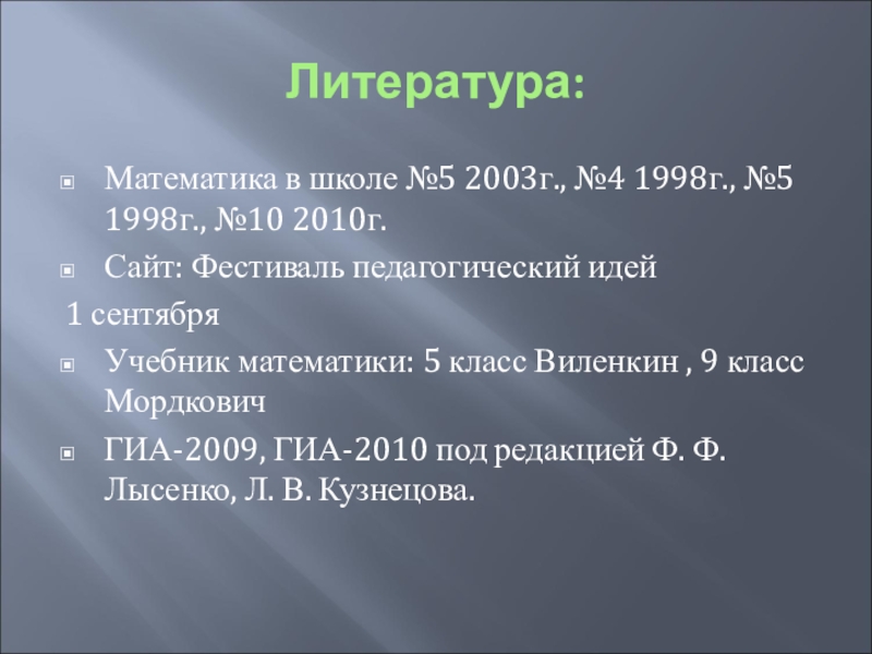 Математика в школе №5 2003г., №4 1998г., №5 1998г., №10 2010г.