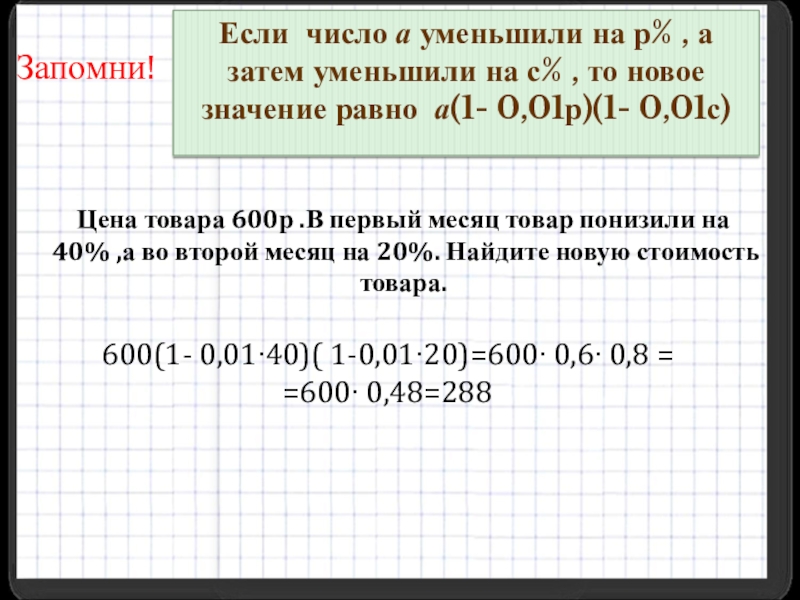 а(1-0,01∙30)(1+0,01∙30) = а(1- 0,09)= 0,91а