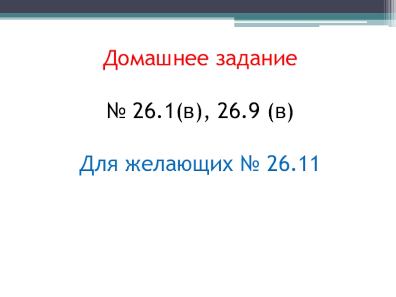 Слайд 16Домашнее задание № 26.1(в), 26.9 (в) Для желающих № 26.11