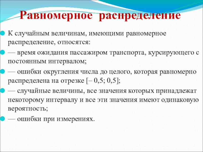 — случайные величины, все значения которых принадлежат некоторому интервалу и все эти значения имеют одинаковую вероятность;