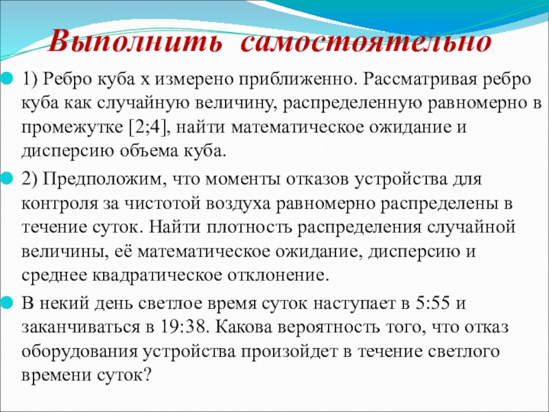 1) Ребро куба х измерено приближенно. Рассматривая ребро куба как случайную