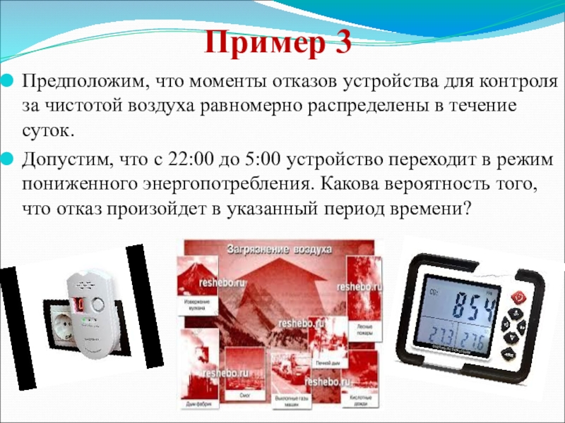 2) Предположим, что моменты отказов устройства для контроля за чистотой воздуха равномерно распределены в течение суток.