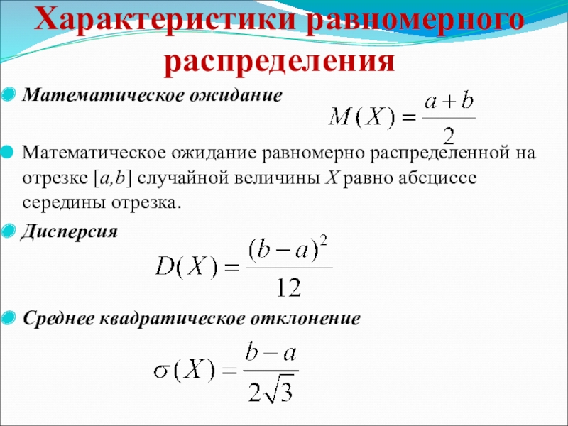 лежат на отрезке [a;b] и имеют постоянную плотность распределения.