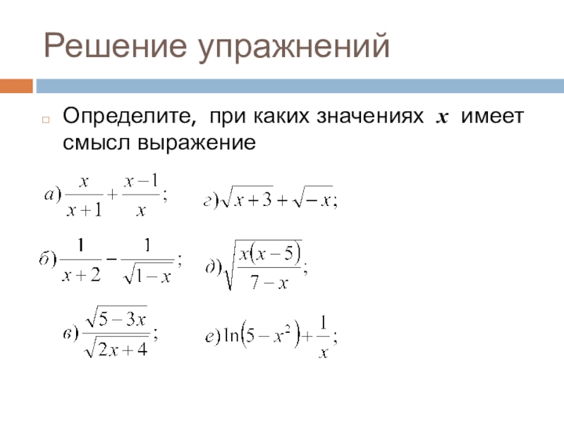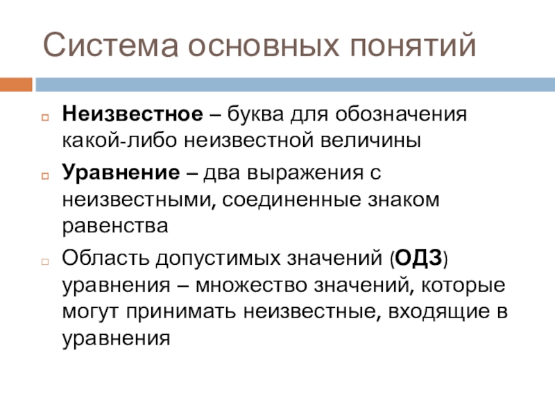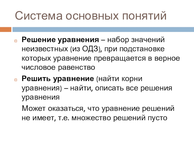 Область допустимых значений (ОДЗ) уравнения – множество значений, которые могут принимать неизвестные, входящие в уравнения