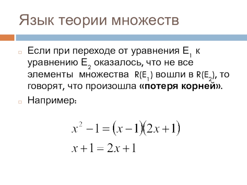 оказалось, что не все элементы множества R(E1) вошли в R(E2), то говорят, что произошла «потеря корней».
