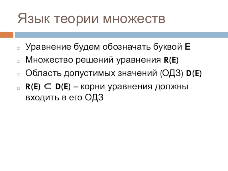 R(E) D(E) – корни уравнения должны входить в его ОДЗ