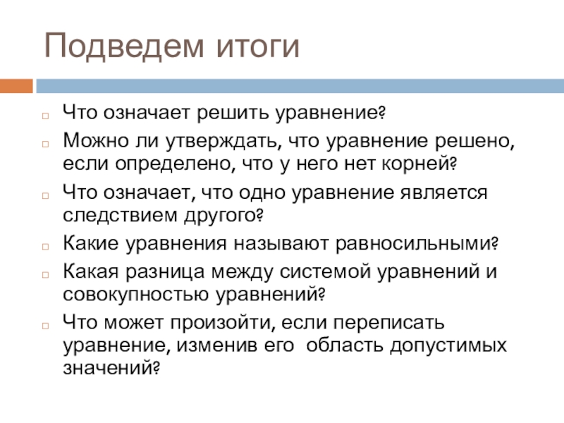 После этого либо выполняют проверку, либо выясняют, будут ли уравнения цепочки равносильны друг другу.