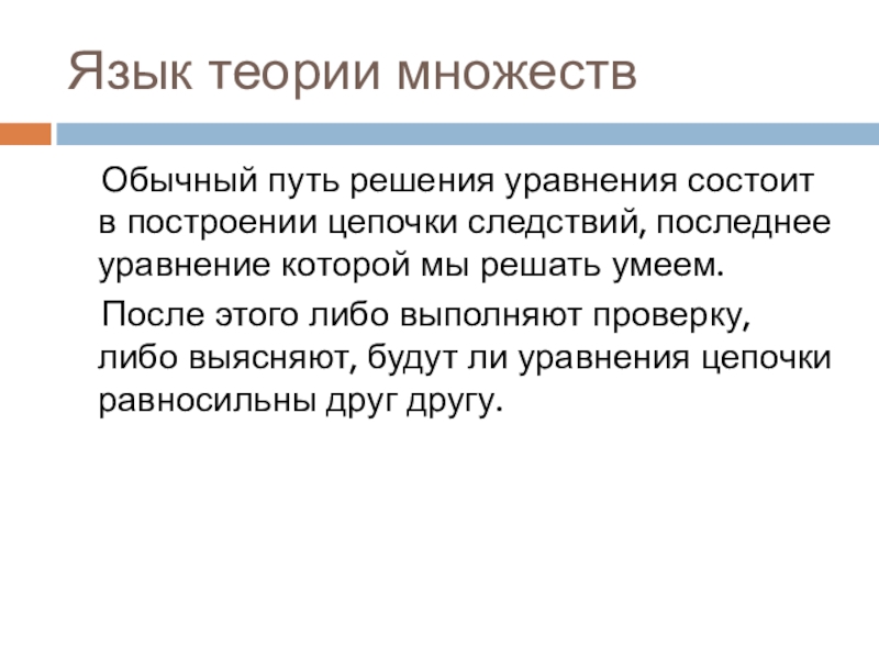 Обычный путь решения уравнения состоит в построении цепочки следствий,