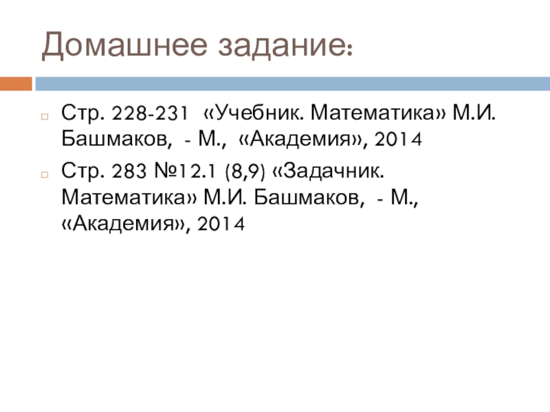 Стр. 228-231 «Учебник. Математика» М.И. Башмаков, - М., «Академия», 2014