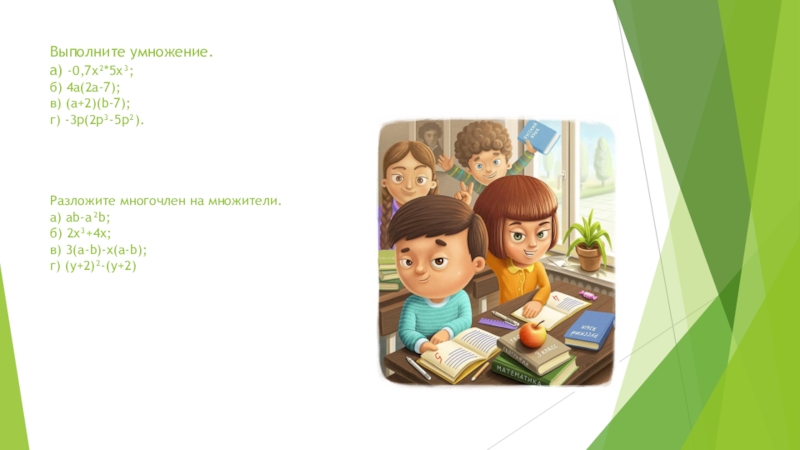 Презентация, доклад по математике на тему Разложение многочлена на множители способом группировки