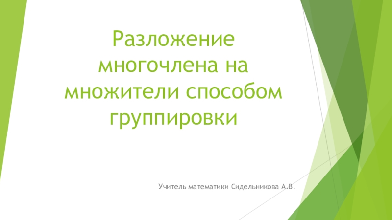 Разложение многочлена на множители способом группировки Учитель математики Сидельникова А.В.
