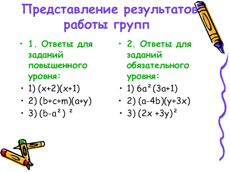 2. Ответы для заданий обязательного уровня:
