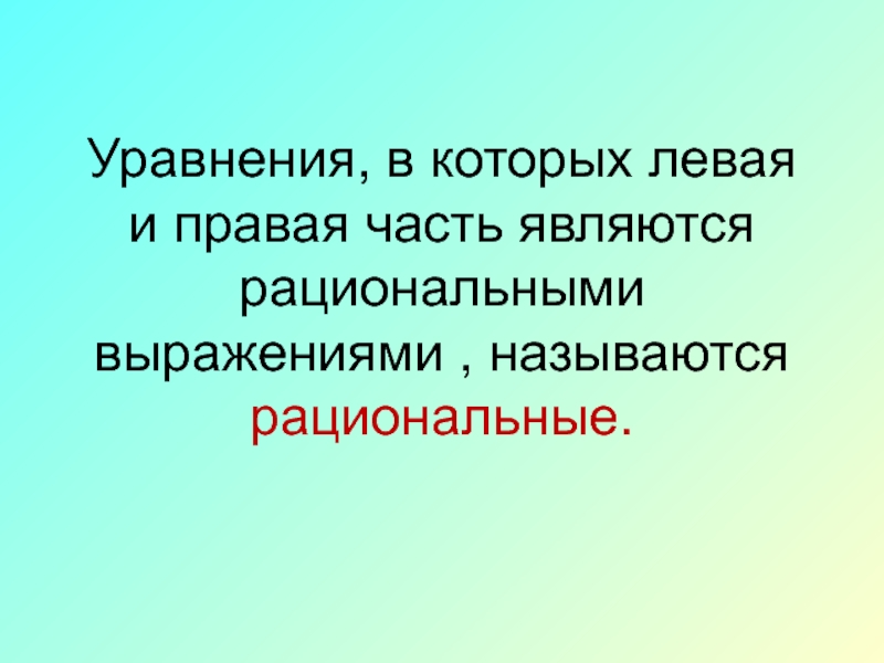 Уравнения, в которых левая и правая часть являются рациональными выражениями , называются рациональные.