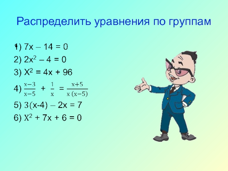 Слайд 6Уравнения, в которых левая и правая часть являются рациональными выражениями ,