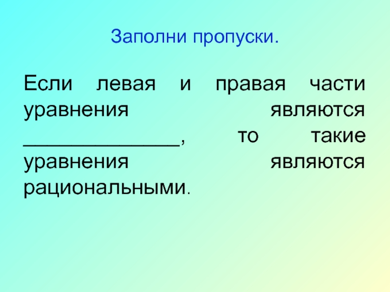 Заполни пропуски.Если левая и правая части уравнения являются _____________, то такие уравнения являются рациональными.