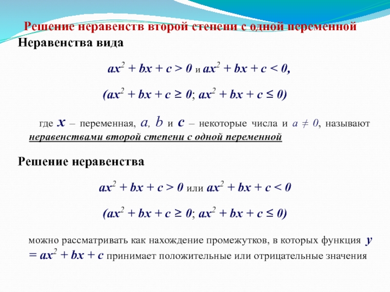 ax2 + bx + c > 0 или ax2 + bx + c < 0