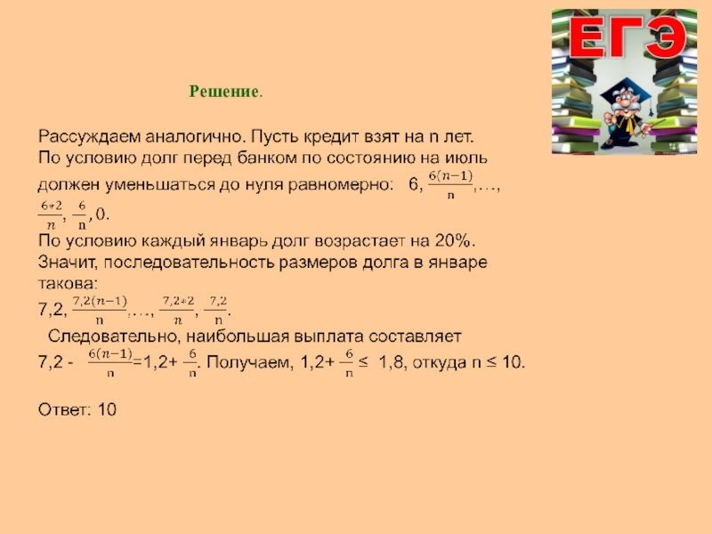 ‐ каждый январь долг возрастает на 20% по сравнению с