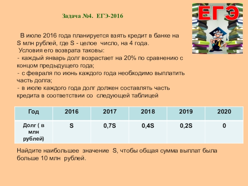Слайд 18 В июле 2016 года планируется взять кредит в банке на